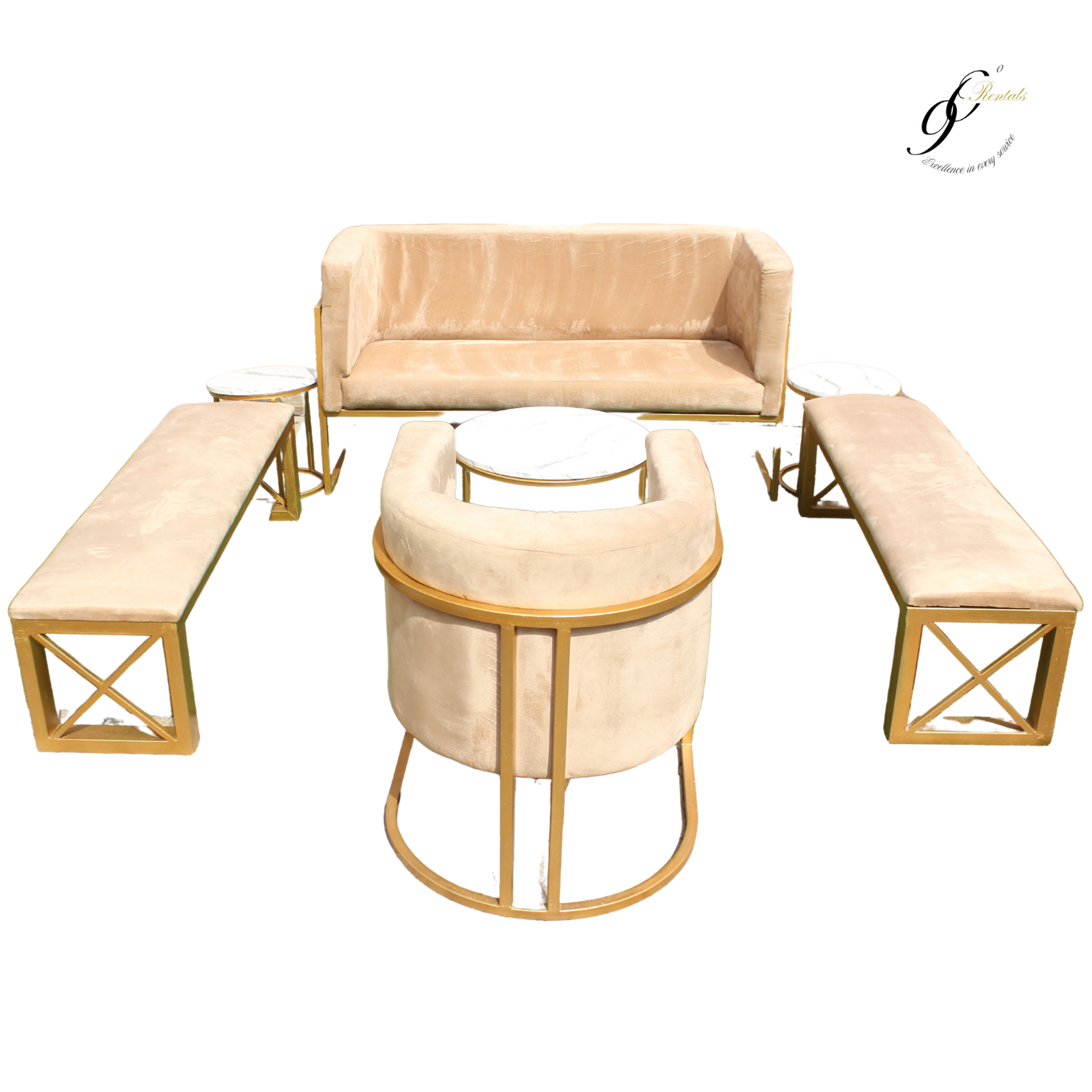 Create a cozy VIP space with our 10-seater lounge set—ideal for chill zones, cocktail corners, and bridal lounges.